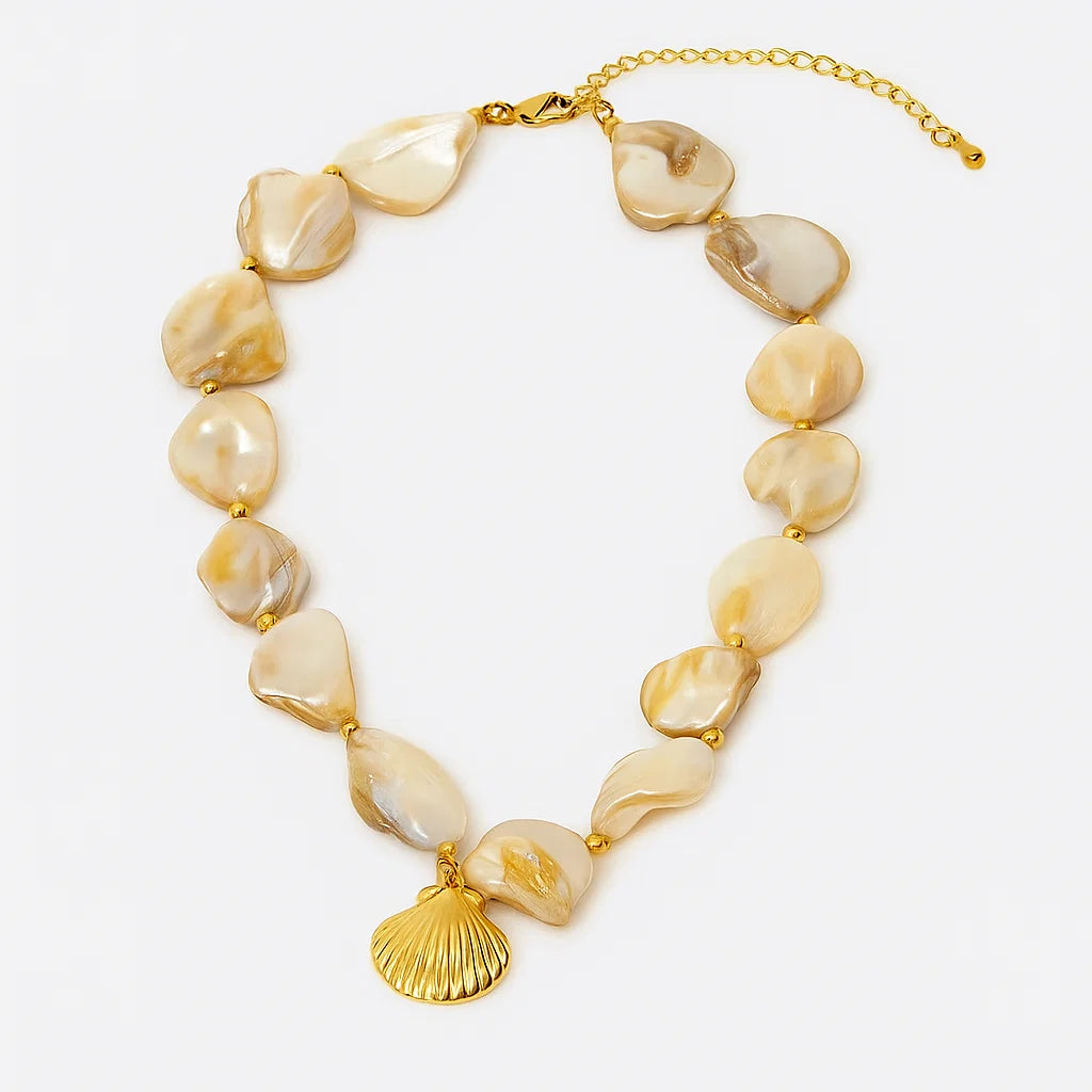 Abalone Bliss features a beautiful combination of abalone and gold-filled beads paired with a delicate clamshell piece. This unique design brings a touch of natural elegance and warmth, perfect for adding a subtle yet meaningful accent to your everyday style. Embrace the calming beauty of the sea with this thoughtfully crafted accessory.