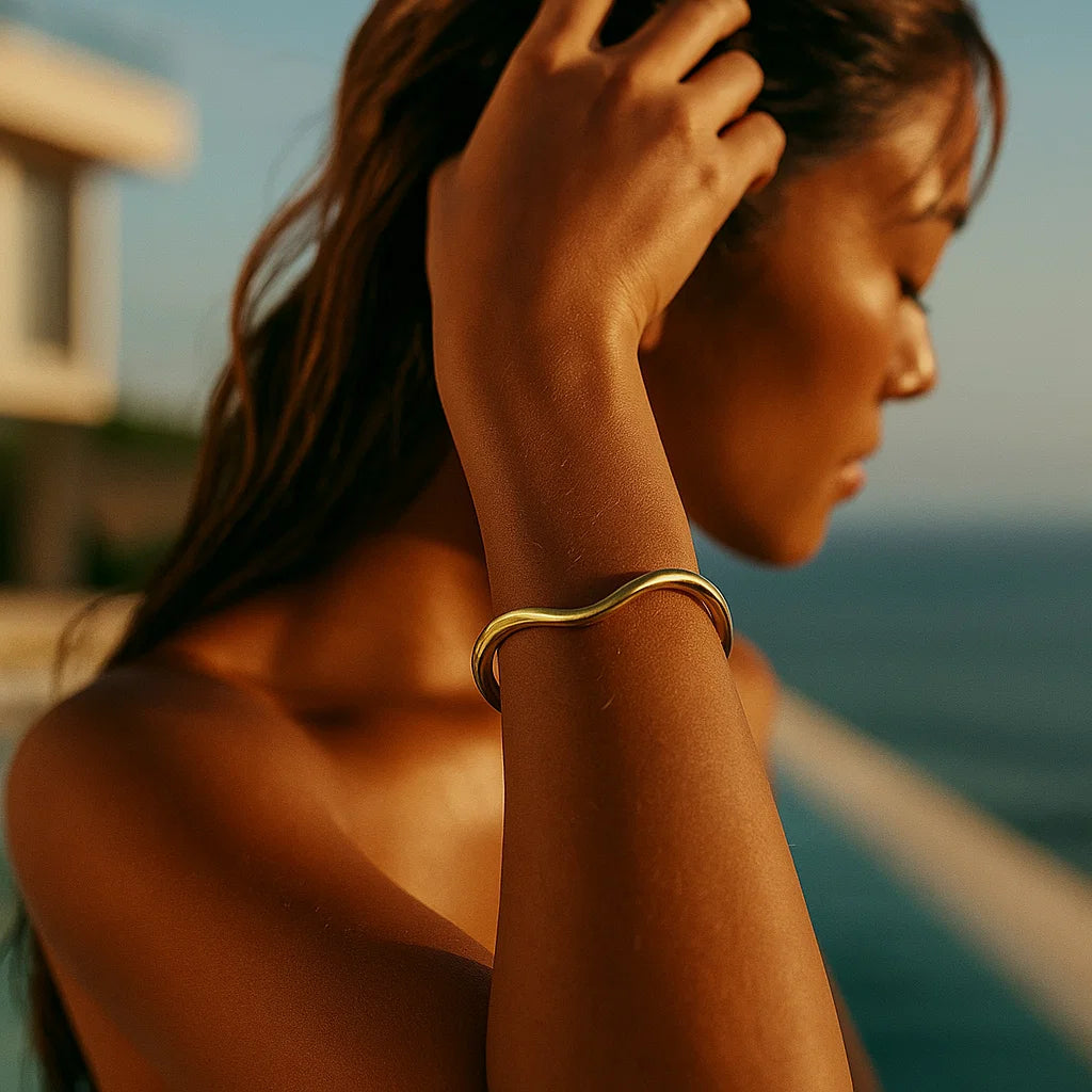 Elevate your style with the Maya Abstract Gold Cuff (Thin). This stunning 18k gold-filled cuff is designed to withstand daily wear and remain tarnish-free, making it a long-lasting addition to your jewelry collection. Its waterproof feature allows for versatile wear, while its beautiful design makes it a staple piece for years to come.